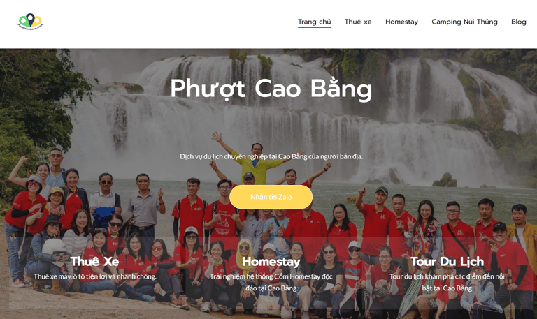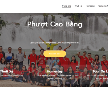 Một trong số những dự án tiêu biểu của chúng tôi là website dịch vụ du lịch Cao Bằng - phuotcaobang.com. Giao diện tối giản, trải nghiệm mượt, tối ưu SEO, giúp khách hàng dễ dàng tìm hiểu và đặt dịch vụ tour, dịch vụ camping, thuê xe... của Phượt Cao Bằng.